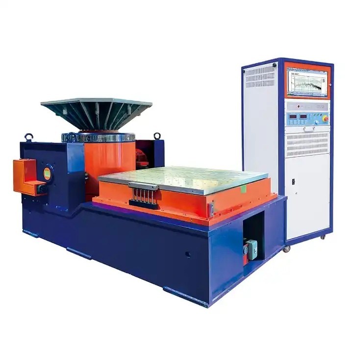 Le système de test à refroidissement par air de vibration de série a beaucoup d'avantages tels que la fréquence large, l'index d'excellence, la fiabilité élevée, la petite surface au sol, le mouvement commode et l'opération simple. Il y a beaucoup de différents types de table de vibration disponibles dans cette série. la gamme de force d'excitation de 1kN to70kN et la charge maximale de 120kg à 1000kg. Très utilisé dans l'aviation, aérospatiale, défend, embarque la communication, des véhicules à moteur, l'électronique, l'appareil électrique et ménager, et tout autre champ. Elle peut fournir l'équipement de test complet pour le climat et la mécanique. Le système se compose du dispositif trembleur de vibration, amplificateur de puissance, ventilateur.